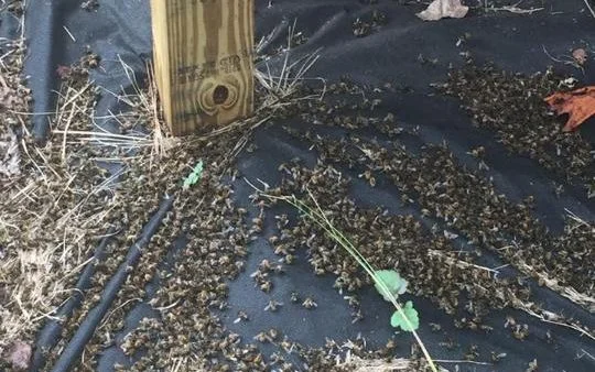 A picture posted on Facebook of dead bees at Flowertown Bee Farm and Supply. CREDIT: FACEBOOK